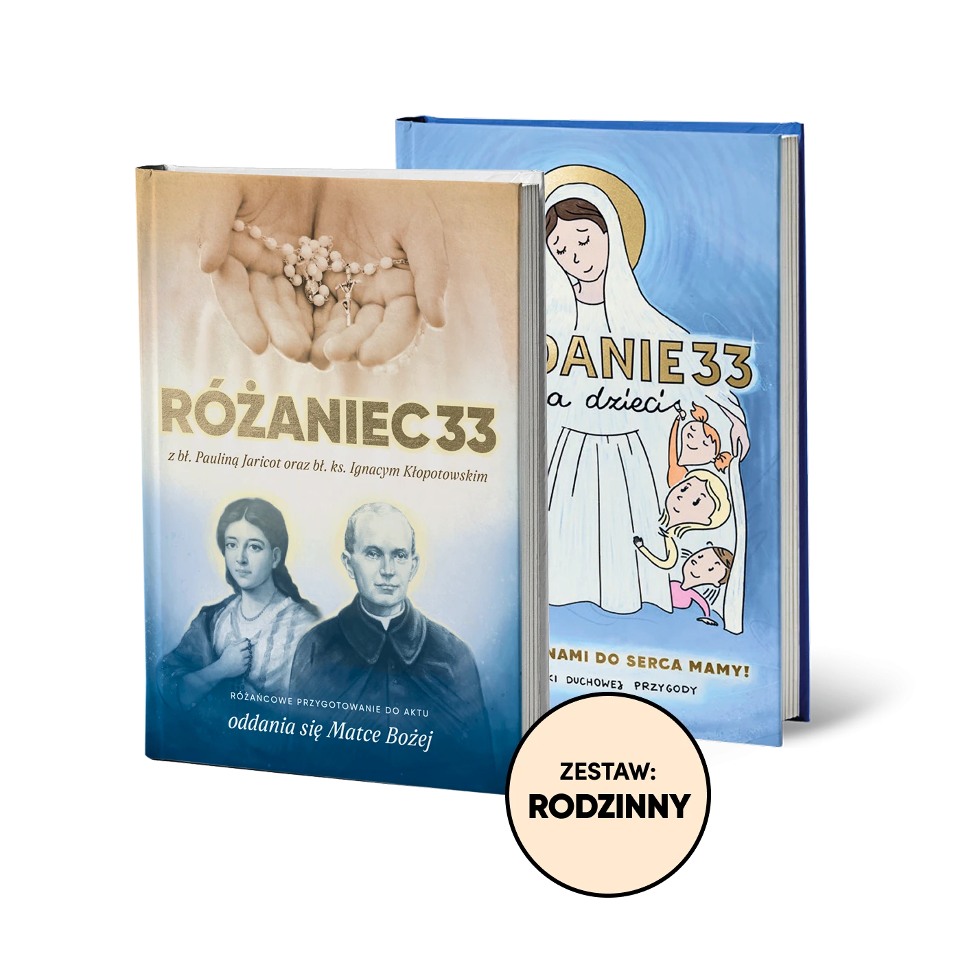 Wyjątkowy zestaw dwóch książek, który pomoże całej rodzinie przeżyć wspólnie 33-dniowe rekolekcje przygotowujące do aktu oddania się Matce Bożej. Zestaw zawiera książkę dla dorosłych Różaniec33 w oprawie twardej oraz Oddanie33 dla dzieci.